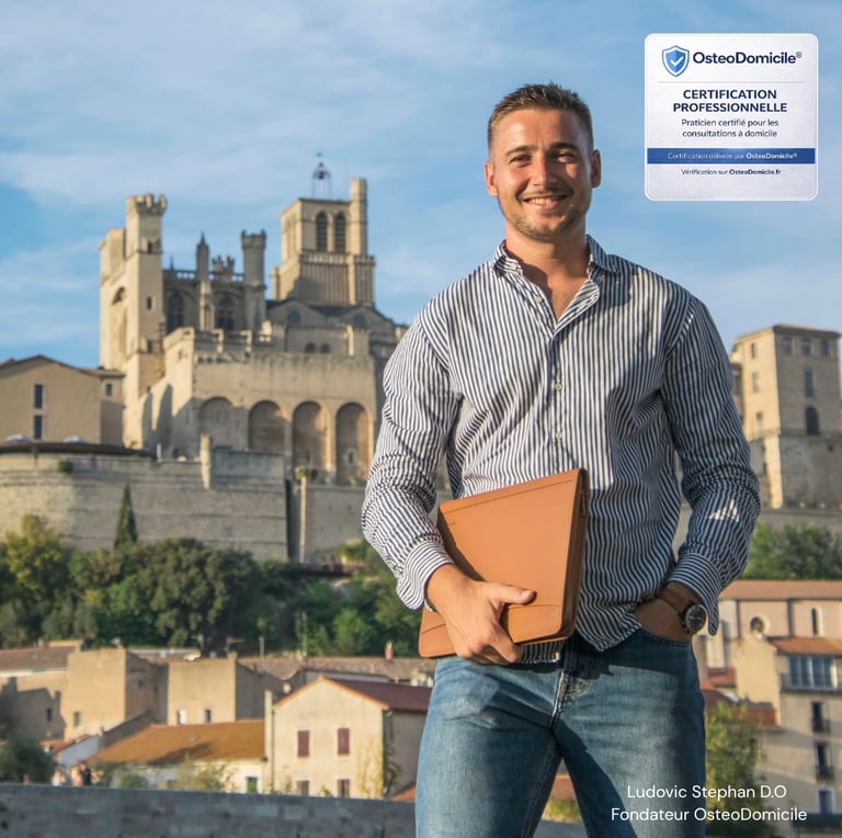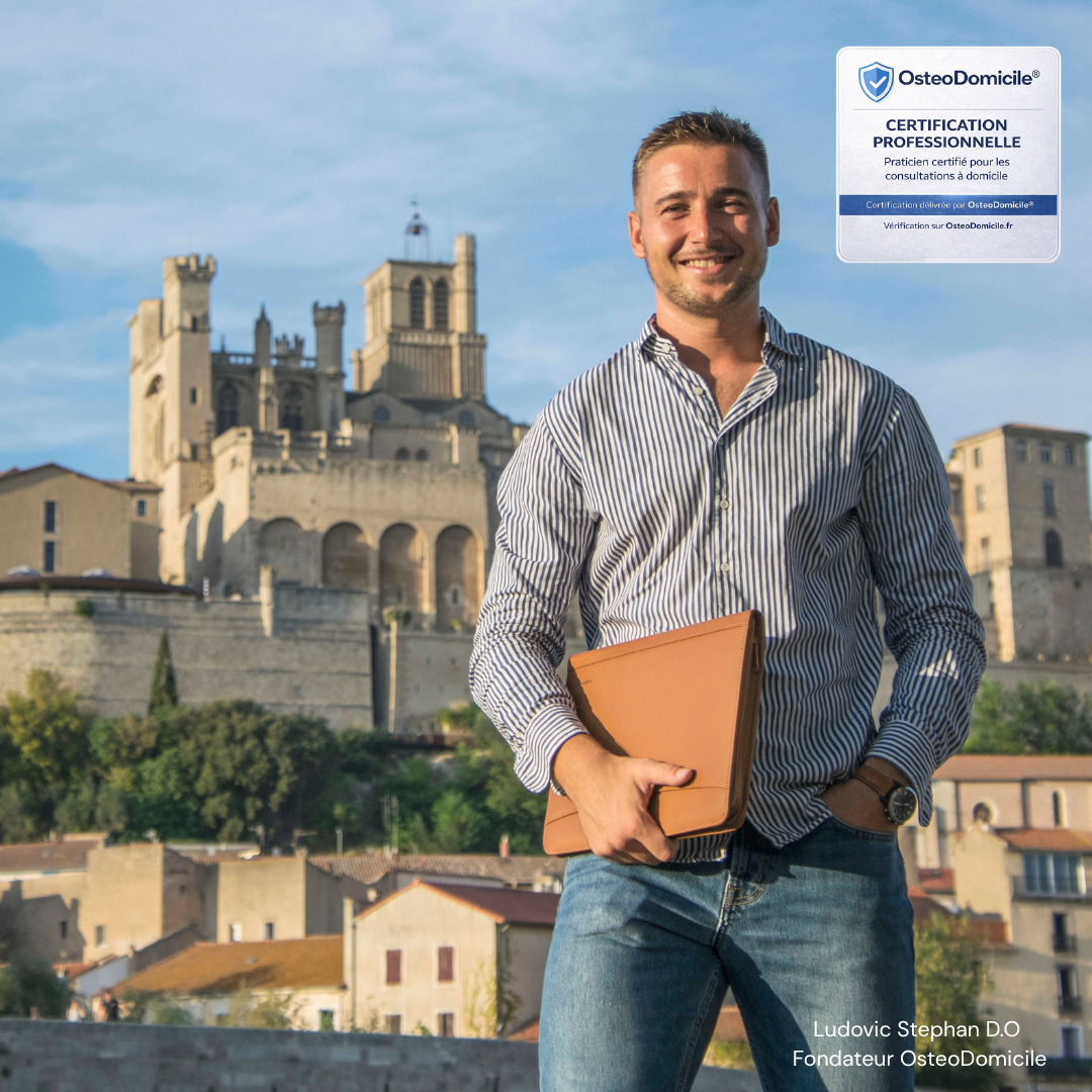 Ludovic STEPHAN Ostéopathe diplômé, souriant et professionnel, je me déplace à votre domicile pour des consultations de qualité, adaptées à tous les profils. Grâce à 7 ans d’expérience sur le terrain, j’ai accompagné de nombreux patients dans la région biterroise, avec une approche à la fois rigoureuse et bienveillante. Mon objectif : vous aider à retrouver confort, mobilité et bien-être dans un cadre rassurant et personnalisé.